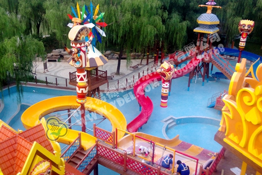 南宮溫泉度(dù)假村的(de)水上項目獨(dú)具風格,以部落主題展現,栩栩如生的部落人物(wù)造型,誇張的巫師(shī)頭像,搭配亭....