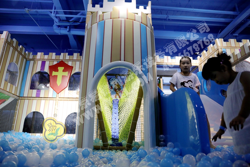 全新城堡主題,藍(lán)白半透明海洋球仿(fǎng)佛天空中的雲朵,碩大的城堡衝入雲霄,可謂真正的(de)天空之城。腳下踩著雲,去挑戰那城堡上的刺激,哪(nǎ)個孩子不愛呢?